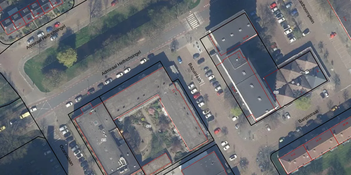 Het perceel waarop Bazuinlaan 2-F107 staat heeft een oppervlakte van 2357 m². Dit is een zeer groot perceel. De perceeloppervlakte wordt geregistreerd door het Kadaster. Gedetailleerde informatie over de maten van dit perceel kunt u vinden in het rapport Kadastrale kaart met maatvoering van Bazuinlaan 2-F107.