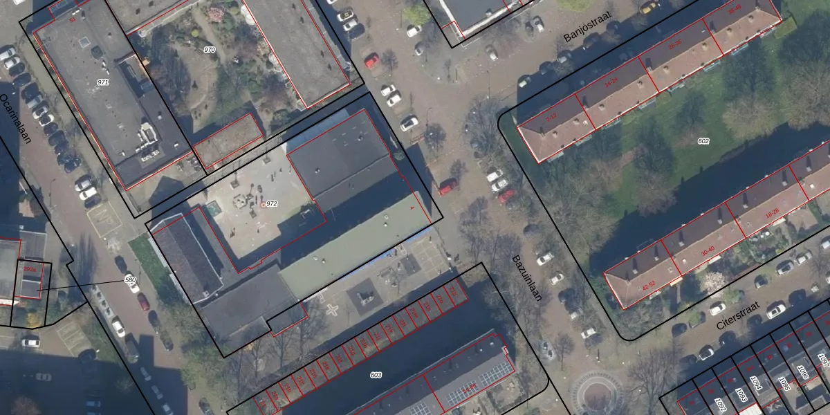 Bazuinlaan 4 is gelegen op kadastraal perceel RWK01H972. Deze kadastrale aanduiding is uniek en wordt gebruikt door het Kadaster om eigendomsrechten en andere zakelijke rechten vast te leggen. Het perceel maakt onderdeel uit van de kadastrale gemeente Rijswijk.