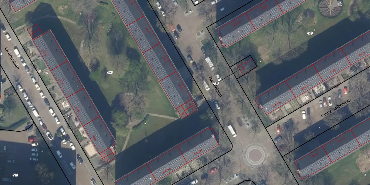 Het perceel waarop Bazuinlaan 60 staat heeft een oppervlakte van 9908 m². Dit is een zeer groot perceel. De perceeloppervlakte wordt geregistreerd door het Kadaster. Gedetailleerde informatie over de maten van dit perceel kunt u vinden in het rapport Kadastrale kaart met maatvoering van Bazuinlaan 60.