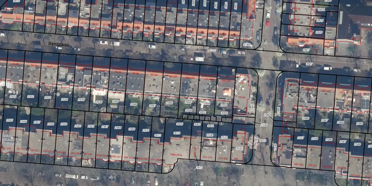 Het perceel waarop Beetslaan 104 staat heeft een oppervlakte van 274 m². Dit is een middelgroot perceel. De perceeloppervlakte wordt geregistreerd door het Kadaster. Gedetailleerde informatie over de maten van dit perceel kunt u vinden in het rapport Kadastrale kaart met maatvoering van Beetslaan 104.