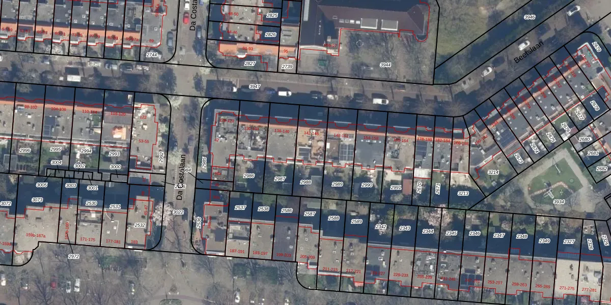 Het perceel waarop het adres ligt is RWK01-A-2988. De afkorting 'RWK01' staat voor kadastrale gemeente Rijswijk. Het perceel is kleiner dan gemiddeld in Rijswijk. Het perceel is 291 m² groot, terwijl het gemiddelde ligt op 1114,17 m². De grootste perceeloppervlakte in de kadastrale gemeente is 44,3 ha. De kleinste oppervlakte bedraagt 0 m². Op het perceel zijn 3 adressen aanwezig. In de Basisregistratie Kadaster (BRK) werden de grenzen van het perceel geregistreerd op 04-04-2006.