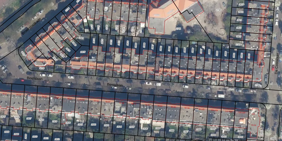 Beetslaan 33 is gelegen op kadastraal perceel RWK01A2868. Deze kadastrale aanduiding is uniek en wordt gebruikt door het Kadaster om eigendomsrechten en andere zakelijke rechten vast te leggen. Het perceel maakt onderdeel uit van de kadastrale gemeente Rijswijk.