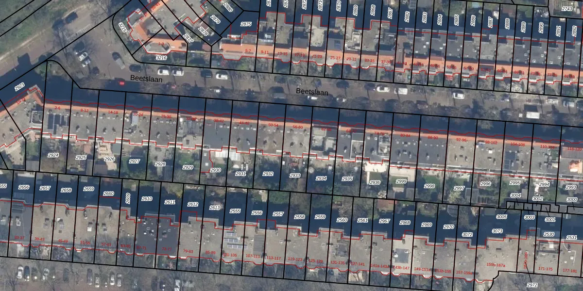 Het perceel waarop Beetslaan 56 staat heeft een oppervlakte van 278 m². Dit is een middelgroot perceel. De perceeloppervlakte wordt geregistreerd door het Kadaster. Gedetailleerde informatie over de maten van dit perceel kunt u vinden in het rapport Kadastrale kaart met maatvoering van Beetslaan 56.
