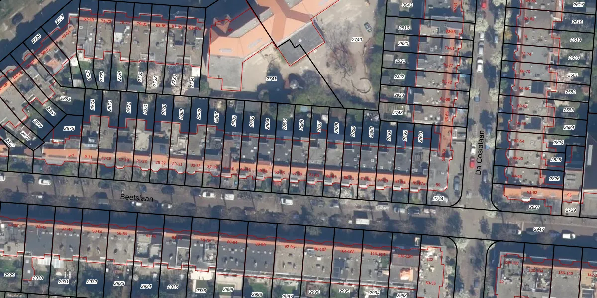Het perceel waarop Beetslaan 59 staat heeft een oppervlakte van 173 m². Dit is een middelgroot perceel. De perceeloppervlakte wordt geregistreerd door het Kadaster. Gedetailleerde informatie over de maten van dit perceel kunt u vinden in het rapport Kadastrale kaart met maatvoering van Beetslaan 59.