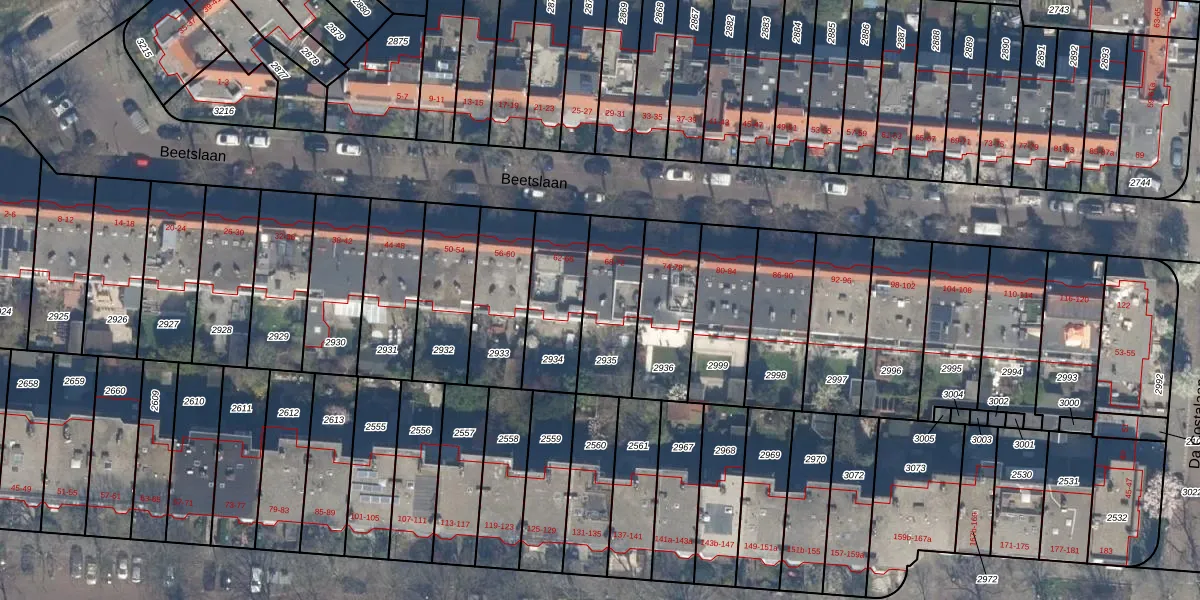 Het perceel waarop Beetslaan 68 staat heeft een oppervlakte van 278 m². Dit is een middelgroot perceel. De perceeloppervlakte wordt geregistreerd door het Kadaster. Gedetailleerde informatie over de maten van dit perceel kunt u vinden in het rapport Kadastrale kaart met maatvoering van Beetslaan 68.