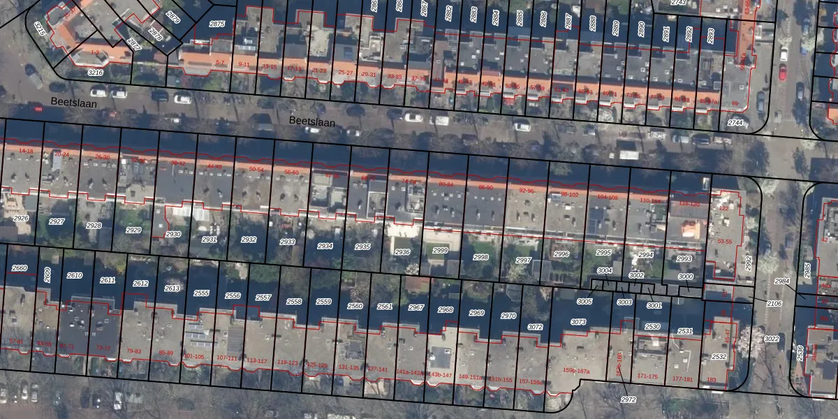 Het perceel waarop Beetslaan 78 staat heeft een oppervlakte van 278 m². Dit is een middelgroot perceel. De perceeloppervlakte wordt geregistreerd door het Kadaster. Gedetailleerde informatie over de maten van dit perceel kunt u vinden in het rapport Kadastrale kaart met maatvoering van Beetslaan 78.