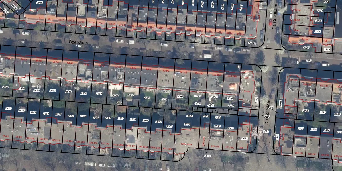 Het perceel waarop Beetslaan 94 staat heeft een oppervlakte van 292 m². Dit is een middelgroot perceel. De perceeloppervlakte wordt geregistreerd door het Kadaster. Gedetailleerde informatie over de maten van dit perceel kunt u vinden in het rapport Kadastrale kaart met maatvoering van Beetslaan 94.