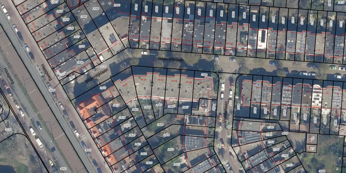 Het perceel waarop Bilderdijklaan 26 staat heeft een oppervlakte van 212 m². Dit is een middelgroot perceel. De perceeloppervlakte wordt geregistreerd door het Kadaster. Gedetailleerde informatie over de maten van dit perceel kunt u vinden in het rapport Kadastrale kaart met maatvoering van Bilderdijklaan 26.