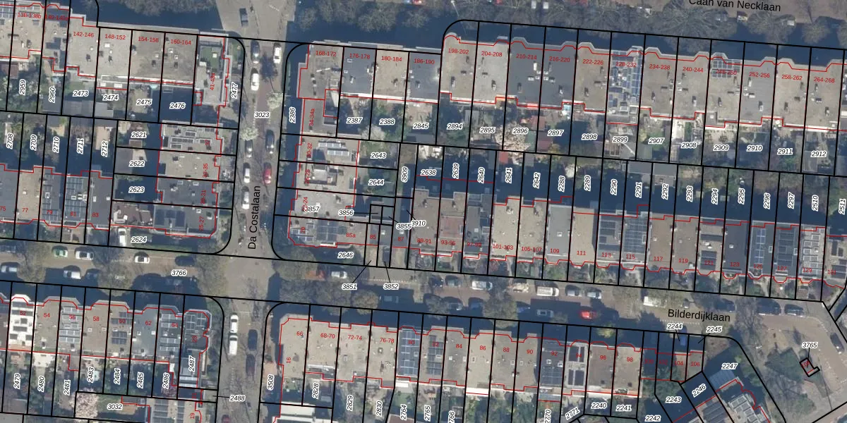 Het perceel waarop Bilderdijklaan 89 staat heeft een oppervlakte van 192 m². Dit is een middelgroot perceel. De perceeloppervlakte wordt geregistreerd door het Kadaster. Gedetailleerde informatie over de maten van dit perceel kunt u vinden in het rapport Kadastrale kaart met maatvoering van Bilderdijklaan 89.