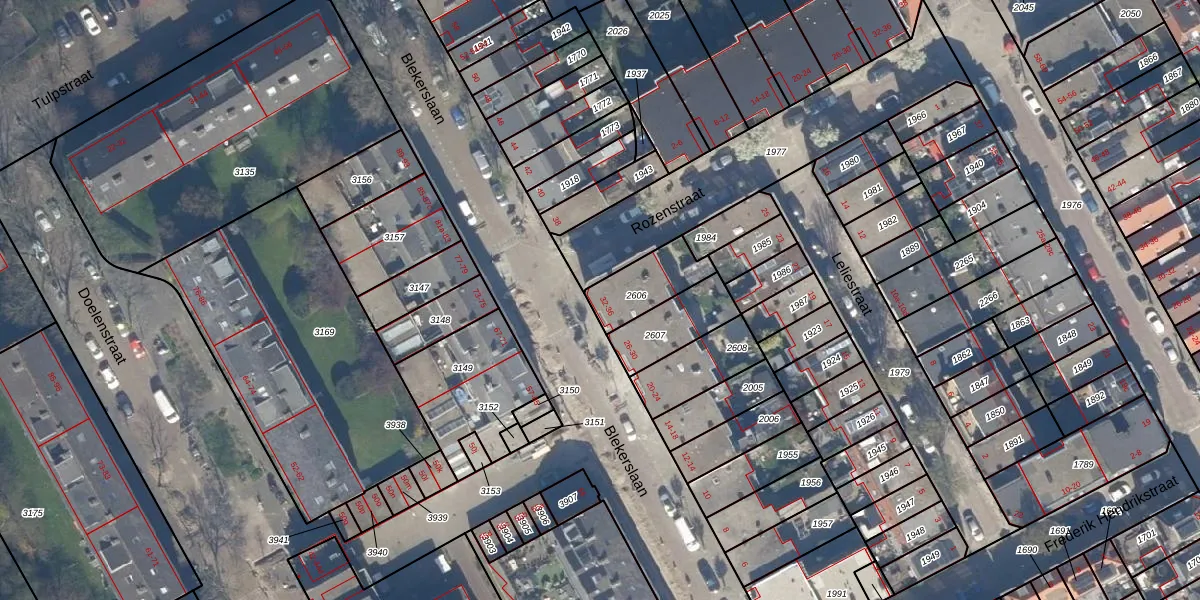 Het perceel waarop Blekerslaan 36 staat heeft een oppervlakte van 164 m². Dit is een middelgroot perceel. De perceeloppervlakte wordt geregistreerd door het Kadaster. Gedetailleerde informatie over de maten van dit perceel kunt u vinden in het rapport Kadastrale kaart met maatvoering van Blekerslaan 36.