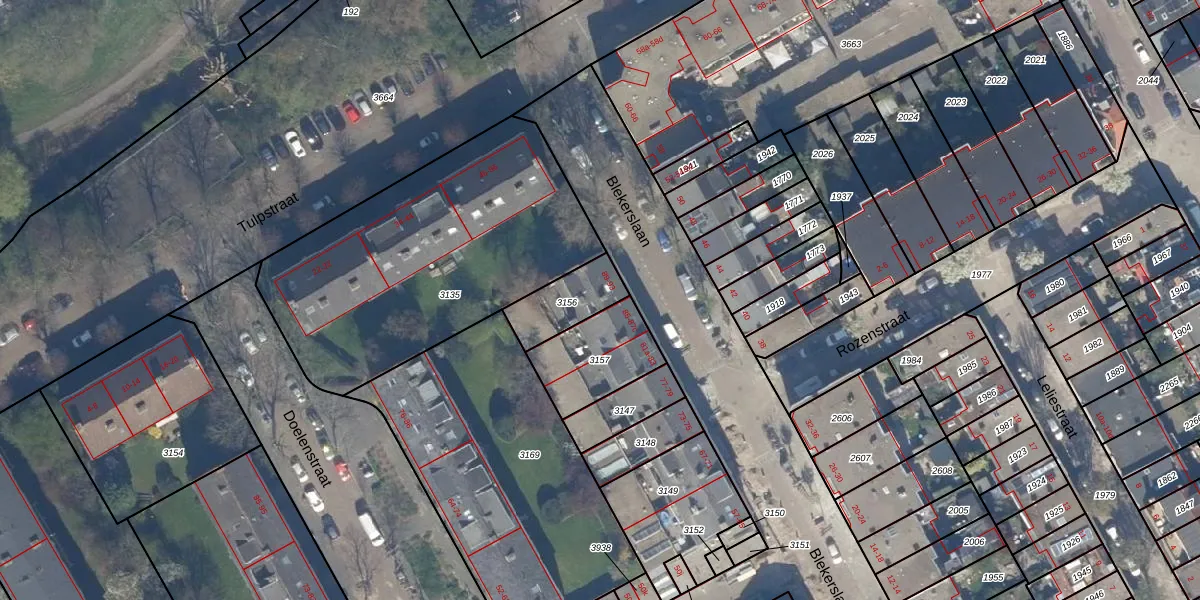Het perceel waarop Blekerslaan 89 staat heeft een oppervlakte van 164 m². Dit is een middelgroot perceel. De perceeloppervlakte wordt geregistreerd door het Kadaster. Gedetailleerde informatie over de maten van dit perceel kunt u vinden in het rapport Kadastrale kaart met maatvoering van Blekerslaan 89.