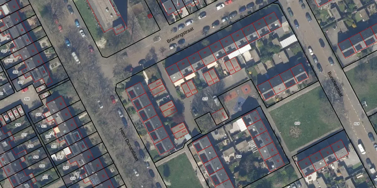 Brantingstraat 41-a is gelegen op kadastraal perceel RWK01I815. Deze kadastrale aanduiding is uniek en wordt gebruikt door het Kadaster om eigendomsrechten en andere zakelijke rechten vast te leggen. Het perceel maakt onderdeel uit van de kadastrale gemeente Rijswijk.