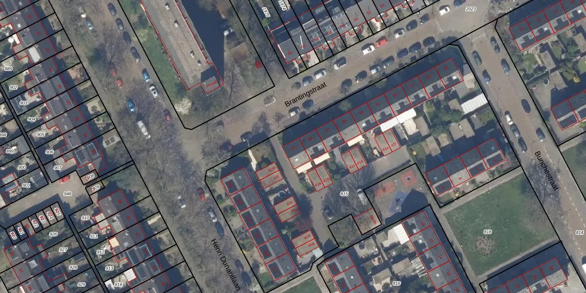 Brantingstraat 41 is gelegen op kadastraal perceel RWK01I815. Deze kadastrale aanduiding is uniek en wordt gebruikt door het Kadaster om eigendomsrechten en andere zakelijke rechten vast te leggen. Het perceel maakt onderdeel uit van de kadastrale gemeente Rijswijk.