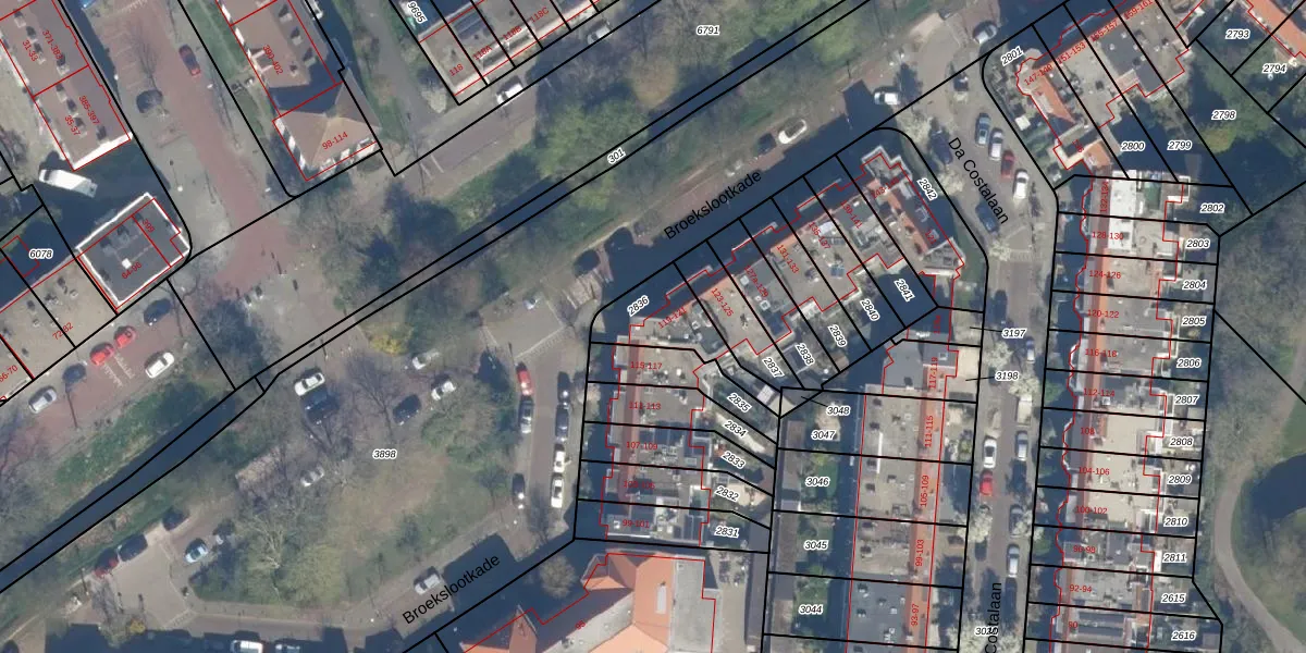 Broekslootkade 121 is gelegen op kadastraal perceel RWK01A2836. Deze kadastrale aanduiding is uniek en wordt gebruikt door het Kadaster om eigendomsrechten en andere zakelijke rechten vast te leggen. Het perceel maakt onderdeel uit van de kadastrale gemeente Rijswijk.