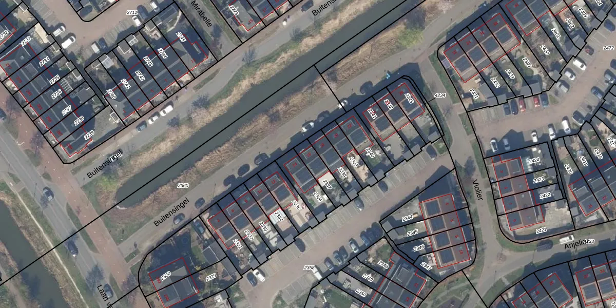 Gebruik de zoekbalk of klik op een perceel voor informatie over de adressen binnen dit perceel.