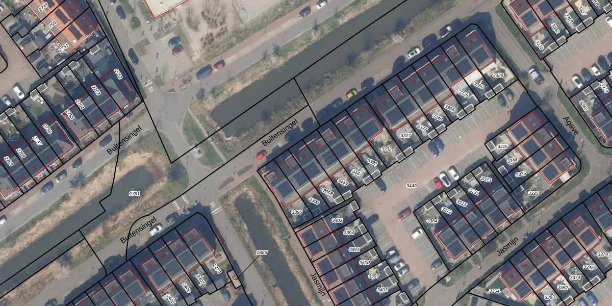 Buitensingel 64 is gelegen op kadastraal perceel RWK01I3398. Deze kadastrale aanduiding is uniek en wordt gebruikt door het Kadaster om eigendomsrechten en andere zakelijke rechten vast te leggen. Het perceel maakt onderdeel uit van de kadastrale gemeente Rijswijk.
