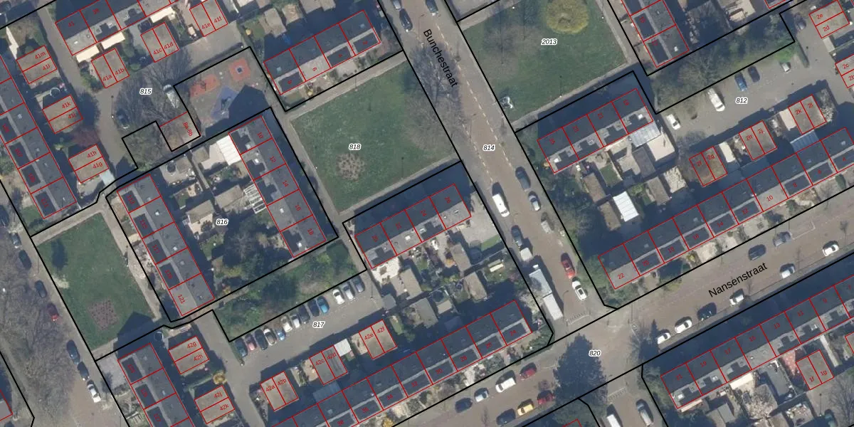 Het perceel waarop Bunchestraat 24 staat heeft een oppervlakte van 4155 m². Dit is een zeer groot perceel. De perceeloppervlakte wordt geregistreerd door het Kadaster. Gedetailleerde informatie over de maten van dit perceel kunt u vinden in het rapport Kadastrale kaart met maatvoering van Bunchestraat 24.