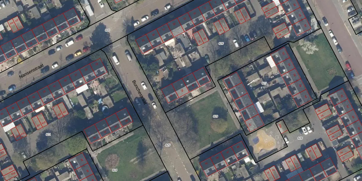 Het perceel waarop Bunchestraat 29 staat heeft een oppervlakte van 4149 m². Dit is een zeer groot perceel. De perceeloppervlakte wordt geregistreerd door het Kadaster. Gedetailleerde informatie over de maten van dit perceel kunt u vinden in het rapport Kadastrale kaart met maatvoering van Bunchestraat 29.