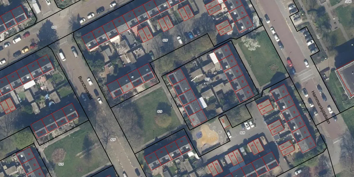 Het perceel waarop Bunchestraat 37 staat heeft een oppervlakte van 1520 m². Dit is een zeer groot perceel. De perceeloppervlakte wordt geregistreerd door het Kadaster. Gedetailleerde informatie over de maten van dit perceel kunt u vinden in het rapport Kadastrale kaart met maatvoering van Bunchestraat 37.