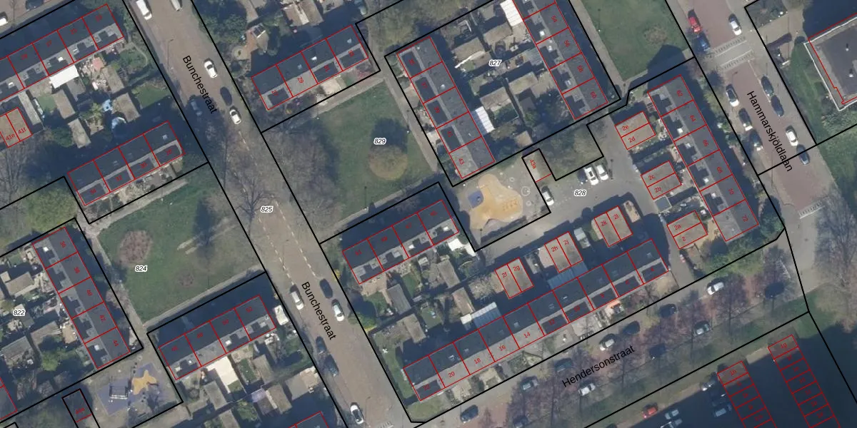 Het perceel waarop Bunchestraat 45 staat heeft een oppervlakte van 4124 m². Dit is een zeer groot perceel. De perceeloppervlakte wordt geregistreerd door het Kadaster. Gedetailleerde informatie over de maten van dit perceel kunt u vinden in het rapport Kadastrale kaart met maatvoering van Bunchestraat 45.