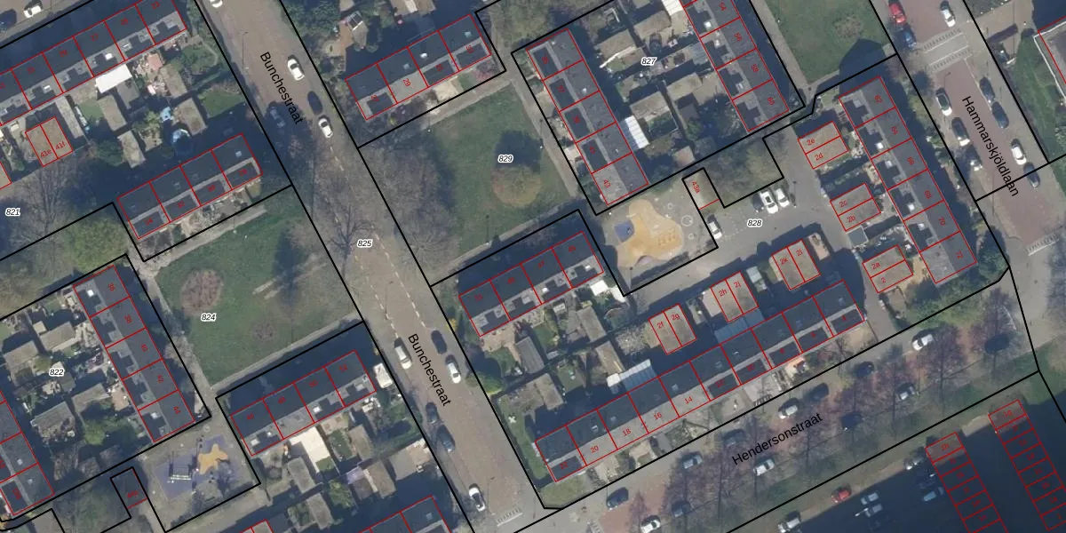 Het perceel waarop Bunchestraat 47 staat heeft een oppervlakte van 4124 m². Dit is een zeer groot perceel. De perceeloppervlakte wordt geregistreerd door het Kadaster. Gedetailleerde informatie over de maten van dit perceel kunt u vinden in het rapport Kadastrale kaart met maatvoering van Bunchestraat 47.