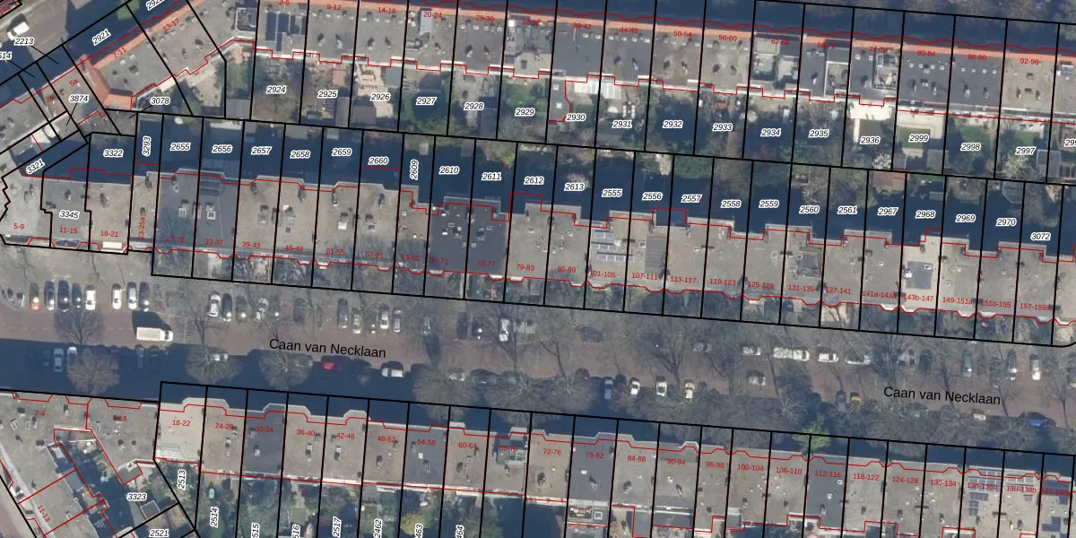 Caan van Necklaan 81 is gelegen op kadastraal perceel RWK01A2612. Deze kadastrale aanduiding is uniek en wordt gebruikt door het Kadaster om eigendomsrechten en andere zakelijke rechten vast te leggen. Het perceel maakt onderdeel uit van de kadastrale gemeente Rijswijk.