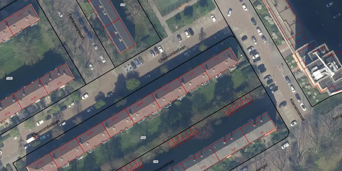 Clavecimbellaan 43 is gelegen op kadastraal perceel RWK01H595. Deze kadastrale aanduiding is uniek en wordt gebruikt door het Kadaster om eigendomsrechten en andere zakelijke rechten vast te leggen. Het perceel maakt onderdeel uit van de kadastrale gemeente Rijswijk.