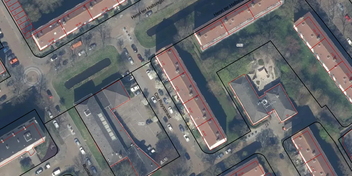Cor Ruysstraat 17 is gelegen op kadastraal perceel RWK01D6053. Deze kadastrale aanduiding is uniek en wordt gebruikt door het Kadaster om eigendomsrechten en andere zakelijke rechten vast te leggen. Het perceel maakt onderdeel uit van de kadastrale gemeente Rijswijk.