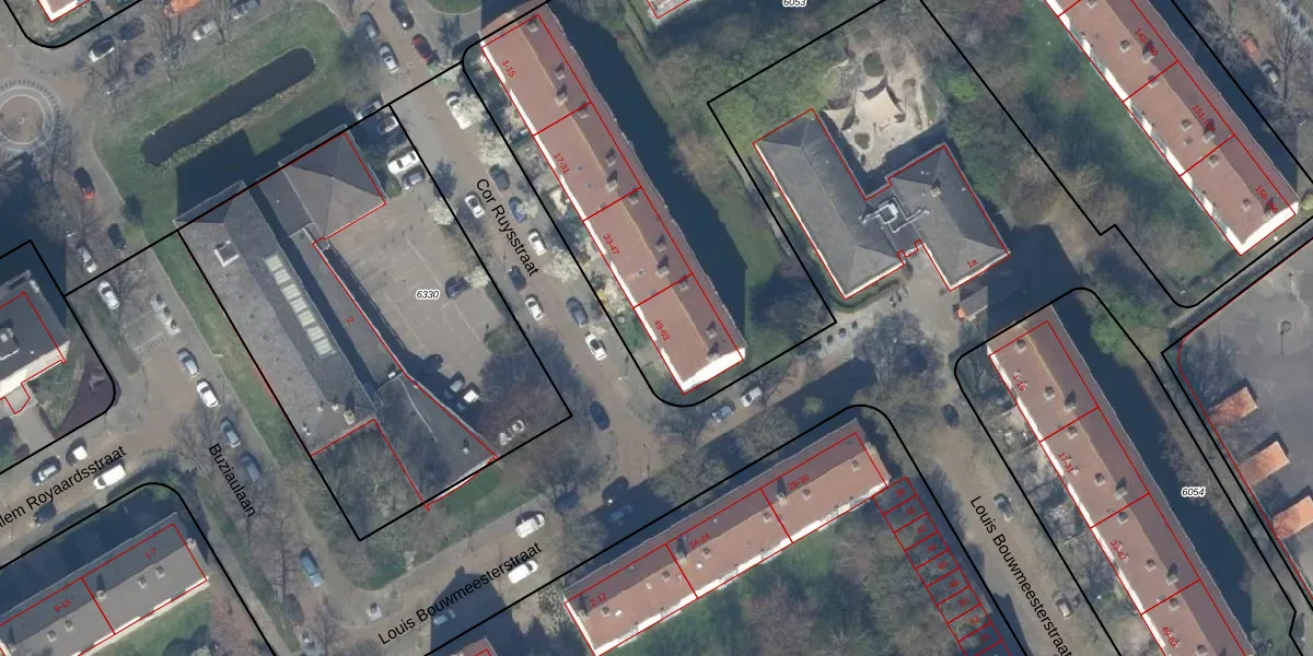 Cor Ruysstraat 49 is gelegen op kadastraal perceel RWK01D6053. Deze kadastrale aanduiding is uniek en wordt gebruikt door het Kadaster om eigendomsrechten en andere zakelijke rechten vast te leggen. Het perceel maakt onderdeel uit van de kadastrale gemeente Rijswijk.