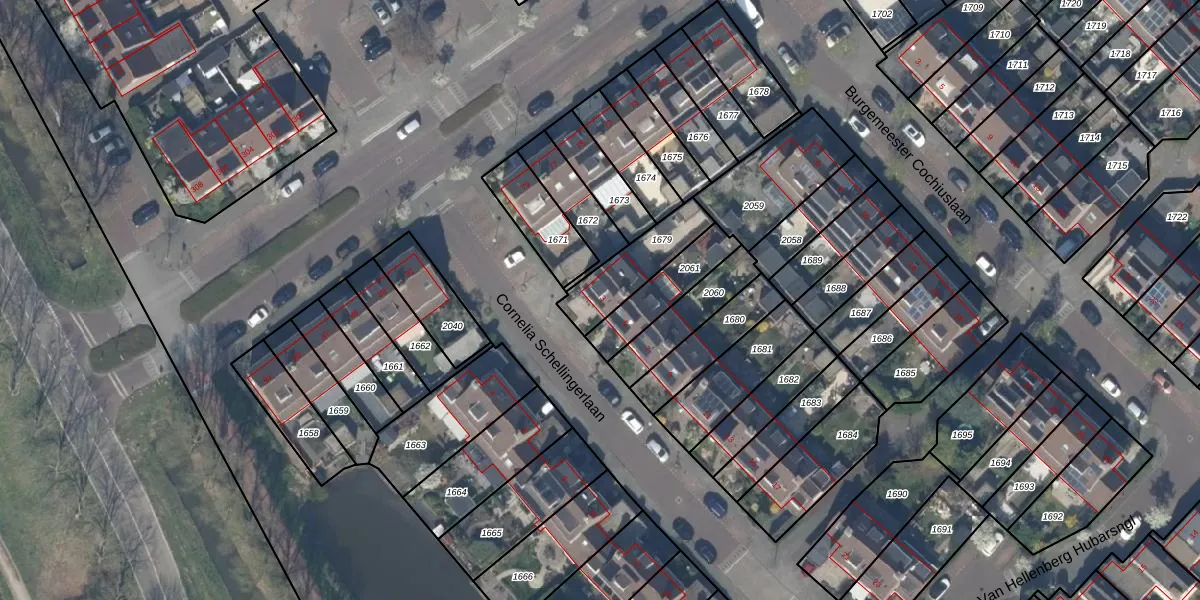Gebruik de zoekbalk of klik op een perceel voor informatie over de adressen binnen dit perceel.