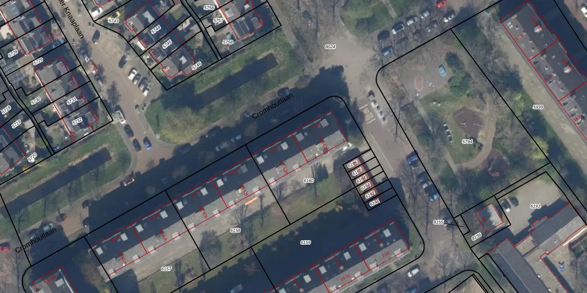 Het perceel waarop Cromhoutlaan 23 staat heeft een oppervlakte van 1037 m². Dit is een zeer groot perceel. De perceeloppervlakte wordt geregistreerd door het Kadaster. Gedetailleerde informatie over de maten van dit perceel kunt u vinden in het rapport Kadastrale kaart met maatvoering van Cromhoutlaan 23.