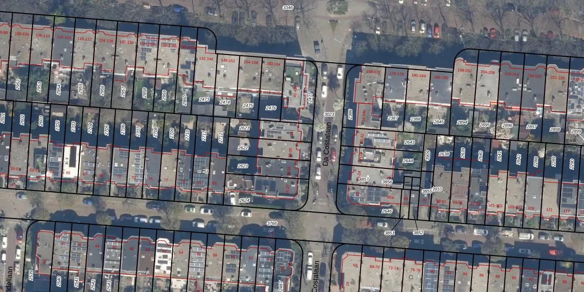 Het perceel waarop Da Costalaan 33 staat heeft een oppervlakte van 181 m². Dit is een middelgroot perceel. De perceeloppervlakte wordt geregistreerd door het Kadaster. Gedetailleerde informatie over de maten van dit perceel kunt u vinden in het rapport Kadastrale kaart met maatvoering van Da Costalaan 33.