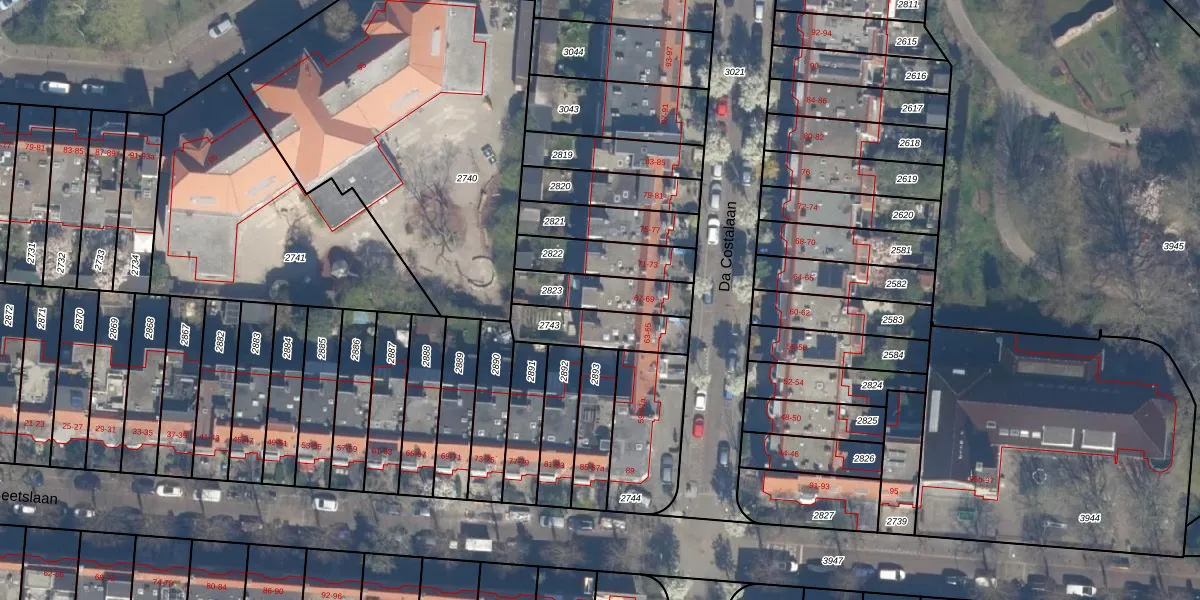 Het perceel waarop Da Costalaan 67 staat heeft een oppervlakte van 173 m². Dit is een middelgroot perceel. De perceeloppervlakte wordt geregistreerd door het Kadaster. Gedetailleerde informatie over de maten van dit perceel kunt u vinden in het rapport Kadastrale kaart met maatvoering van Da Costalaan 67.