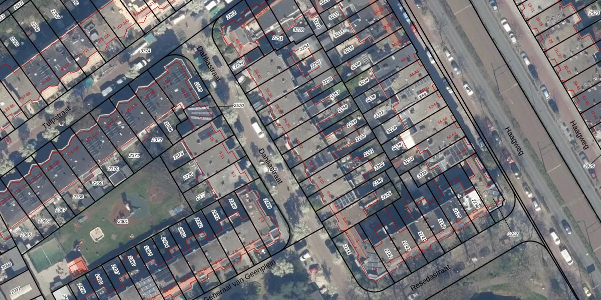 Het perceel waarop Dahliastraat 18 staat heeft een oppervlakte van 165 m². Dit is een middelgroot perceel. De perceeloppervlakte wordt geregistreerd door het Kadaster. Gedetailleerde informatie over de maten van dit perceel kunt u vinden in het rapport Kadastrale kaart met maatvoering van Dahliastraat 18.