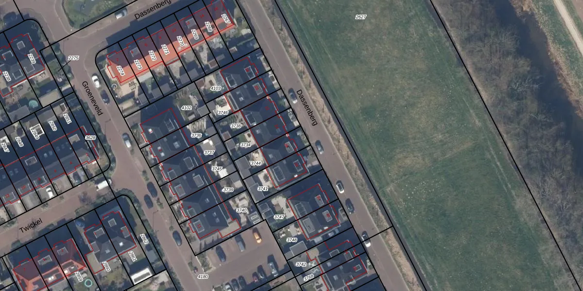 Het perceel waarop Dassenberg 26 staat heeft een oppervlakte van 193 m². Dit is een middelgroot perceel. De perceeloppervlakte wordt geregistreerd door het Kadaster. Gedetailleerde informatie over de maten van dit perceel kunt u vinden in het rapport Kadastrale kaart met maatvoering van Dassenberg 26.