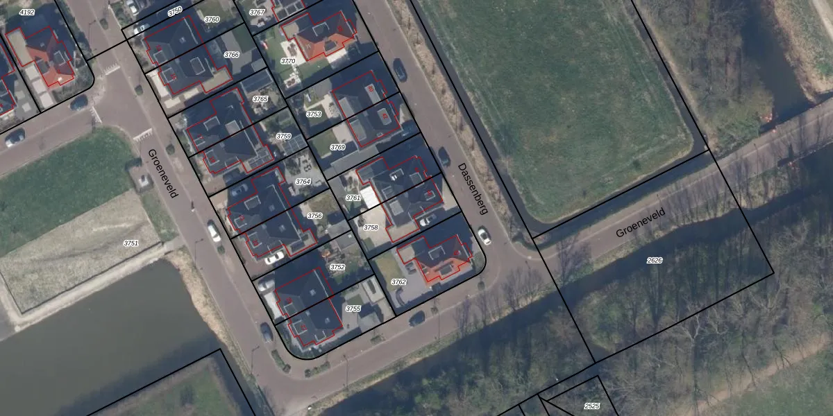Dassenberg 46 is gelegen op kadastraal perceel RWK01I3758. Deze kadastrale aanduiding is uniek en wordt gebruikt door het Kadaster om eigendomsrechten en andere zakelijke rechten vast te leggen. Het perceel maakt onderdeel uit van de kadastrale gemeente Rijswijk.
