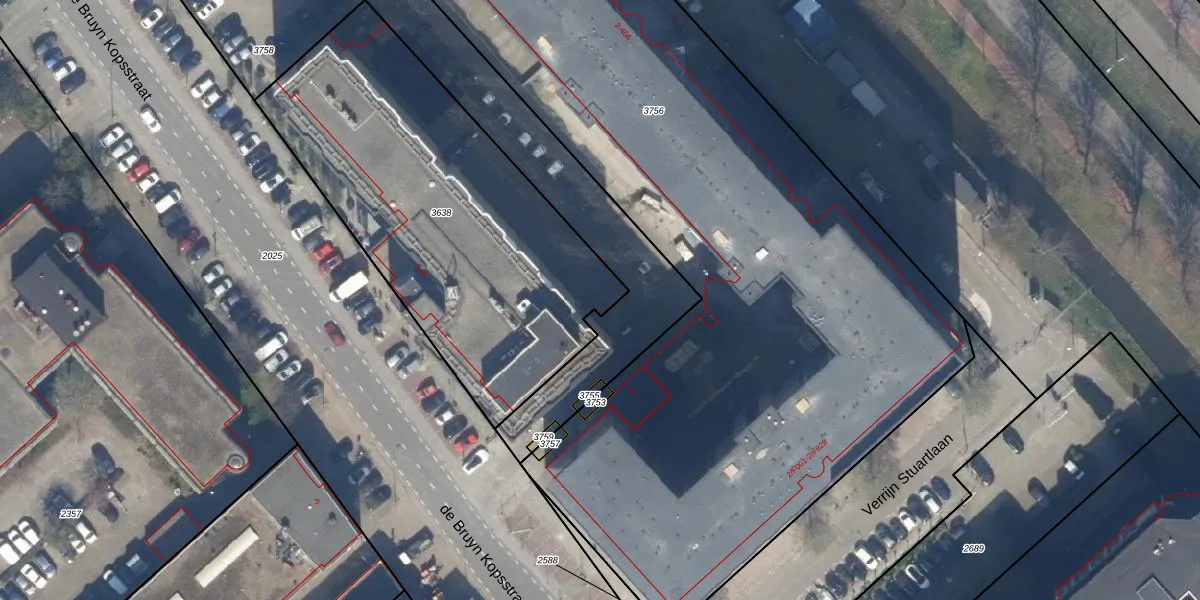 Het perceel waarop de Bruyn Kopsstraat 9-t staat heeft een oppervlakte van 1900 m². Dit is een zeer groot perceel. De perceeloppervlakte wordt geregistreerd door het Kadaster. Gedetailleerde informatie over de maten van dit perceel kunt u vinden in het rapport Kadastrale kaart met maatvoering van de Bruyn Kopsstraat 9-t.