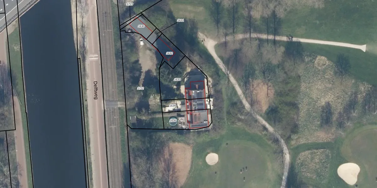 Delftweg 52 is gelegen op kadastraal perceel RWK01F1633. Deze kadastrale aanduiding is uniek en wordt gebruikt door het Kadaster om eigendomsrechten en andere zakelijke rechten vast te leggen. Het perceel maakt onderdeel uit van de kadastrale gemeente Rijswijk.