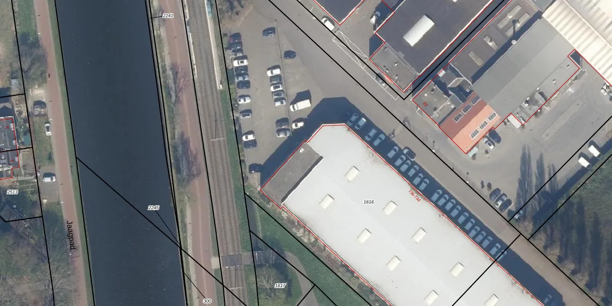 Het perceel waarop het adres ligt is RWK01-F-1616. De afkorting 'RWK01' staat voor kadastrale gemeente Rijswijk. Het perceel is met 5215 m² relatief groot. Het gemiddelde ligt in de kadastrale gemeente Rijswijk op 1114,17 m². De grootste perceeloppervlakte in de kadastrale gemeente is 44,3 ha. De kleinste oppervlakte bedraagt 0 m². Op het perceel zijn 3 adressen aanwezig. De huidige grenzen van het perceel zijn digitaal in de Basisregistratie Kadaster (BRK) geregistreerd op 27-07-2010.