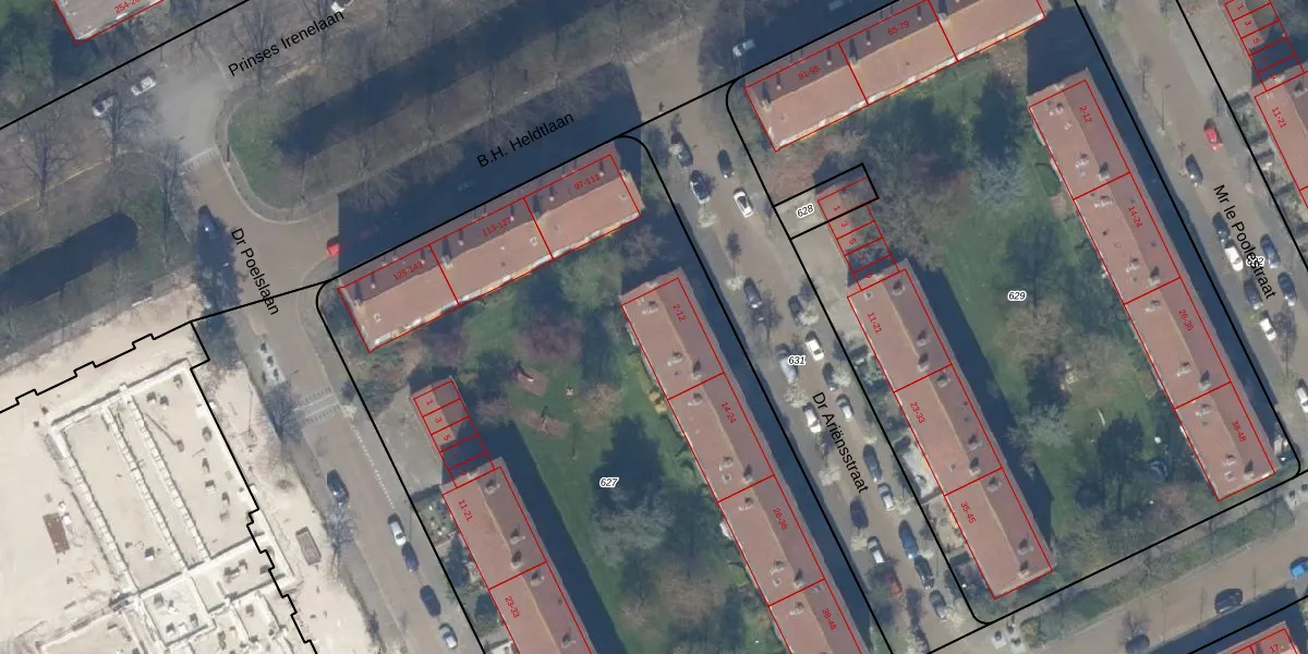 Het perceel waarop Dr Ariënsstraat 6 staat heeft een oppervlakte van 5129 m². Dit is een zeer groot perceel. De perceeloppervlakte wordt geregistreerd door het Kadaster. Gedetailleerde informatie over de maten van dit perceel kunt u vinden in het rapport Kadastrale kaart met maatvoering van Dr Ariënsstraat 6.