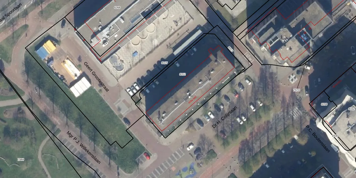 Het perceel waarop Dr H. Colijnlaan 428-e staat heeft een oppervlakte van 1679 m². Dit is een zeer groot perceel. De perceeloppervlakte wordt geregistreerd door het Kadaster. Gedetailleerde informatie over de maten van dit perceel kunt u vinden in het rapport Kadastrale kaart met maatvoering van Dr H. Colijnlaan 428-e.