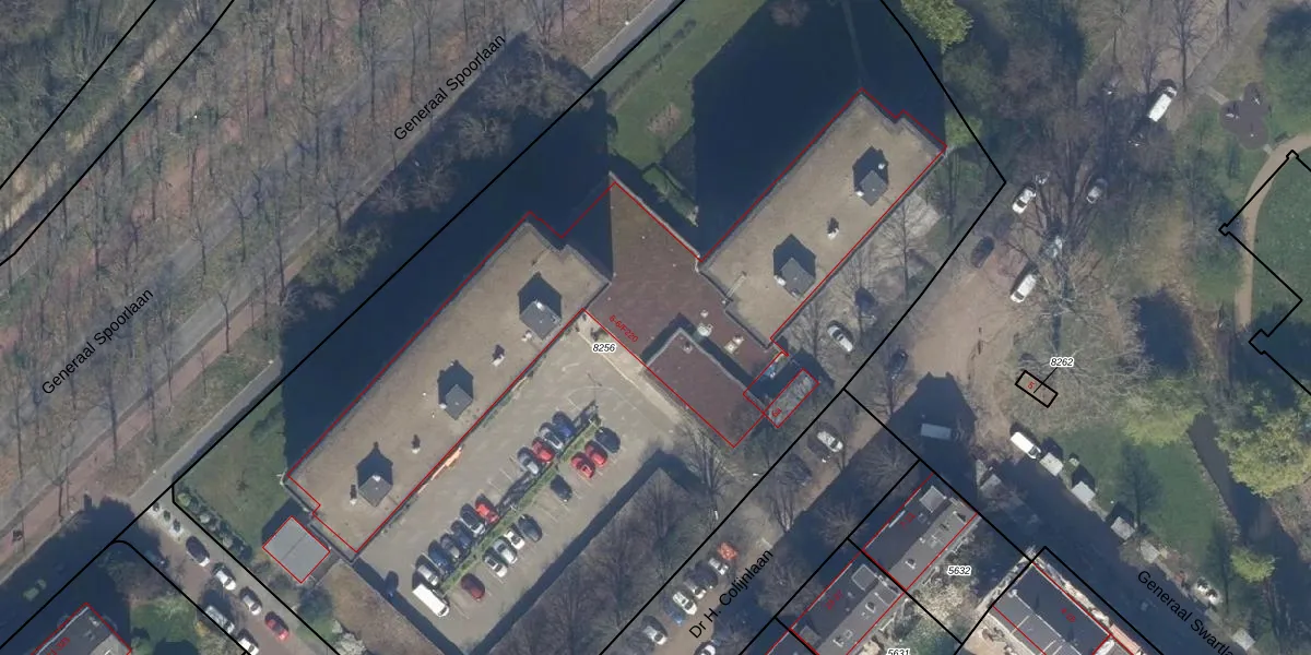 Het perceel waarop Dr H. Colijnlaan 6-F120 staat heeft een oppervlakte van 7770 m². Dit is een zeer groot perceel. De perceeloppervlakte wordt geregistreerd door het Kadaster. Gedetailleerde informatie over de maten van dit perceel kunt u vinden in het rapport Kadastrale kaart met maatvoering van Dr H. Colijnlaan 6-F120.