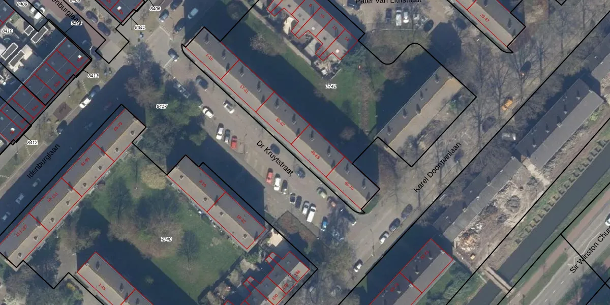Het perceel waarop Dr Kruytstraat 59 staat heeft een oppervlakte van 3429 m². Dit is een zeer groot perceel. De perceeloppervlakte wordt geregistreerd door het Kadaster. Gedetailleerde informatie over de maten van dit perceel kunt u vinden in het rapport Kadastrale kaart met maatvoering van Dr Kruytstraat 59.