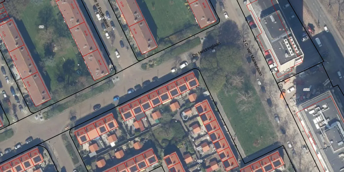 Ds Heldringlaan 5 is gelegen op kadastraal perceel RWK01C635. Deze kadastrale aanduiding is uniek en wordt gebruikt door het Kadaster om eigendomsrechten en andere zakelijke rechten vast te leggen. Het perceel maakt onderdeel uit van de kadastrale gemeente Rijswijk.