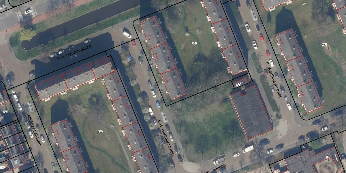 E.H. Hartmanstraat 33 is gelegen op kadastraal perceel RWK01C611. Deze kadastrale aanduiding is uniek en wordt gebruikt door het Kadaster om eigendomsrechten en andere zakelijke rechten vast te leggen. Het perceel maakt onderdeel uit van de kadastrale gemeente Rijswijk.