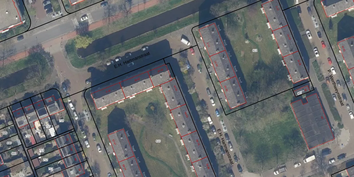 E.H. Hartmanstraat 42 is gelegen op kadastraal perceel RWK01C610. Deze kadastrale aanduiding is uniek en wordt gebruikt door het Kadaster om eigendomsrechten en andere zakelijke rechten vast te leggen. Het perceel maakt onderdeel uit van de kadastrale gemeente Rijswijk.