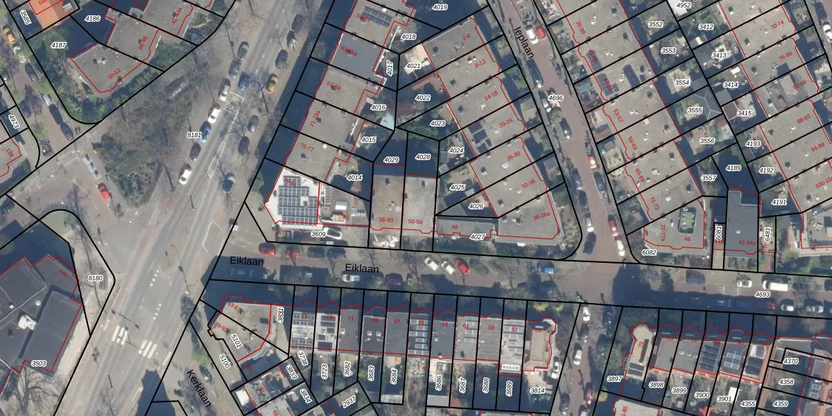 Eiklaan 52 is gelegen op kadastraal perceel RWK01D4028. Deze kadastrale aanduiding is uniek en wordt gebruikt door het Kadaster om eigendomsrechten en andere zakelijke rechten vast te leggen. Het perceel maakt onderdeel uit van de kadastrale gemeente Rijswijk.