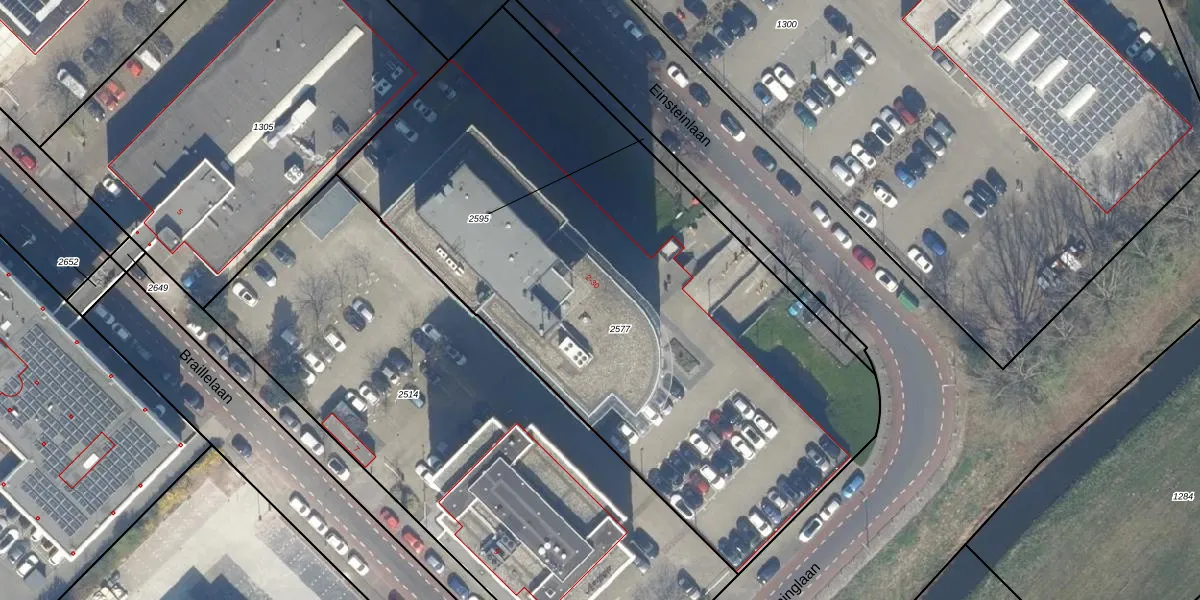 Einsteinlaan 14 is gelegen op kadastraal perceel RWK01E2577. Deze kadastrale aanduiding is uniek en wordt gebruikt door het Kadaster om eigendomsrechten en andere zakelijke rechten vast te leggen. Het perceel maakt onderdeel uit van de kadastrale gemeente Rijswijk.