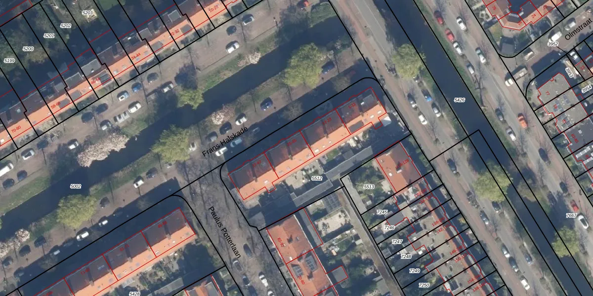 Het perceel waarop Frans Halskade 27 staat heeft een oppervlakte van 1595 m². Dit is een zeer groot perceel. De perceeloppervlakte wordt geregistreerd door het Kadaster. Gedetailleerde informatie over de maten van dit perceel kunt u vinden in het rapport Kadastrale kaart met maatvoering van Frans Halskade 27.