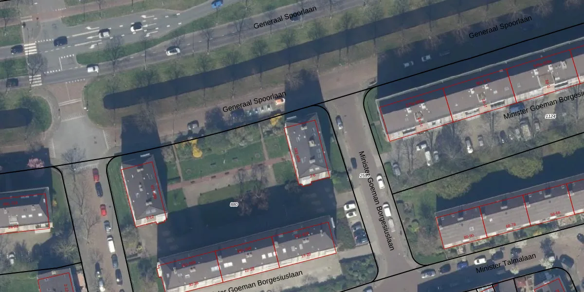 Generaal Spoorlaan 595 is gelegen op kadastraal perceel RWK01C880. Deze kadastrale aanduiding is uniek en wordt gebruikt door het Kadaster om eigendomsrechten en andere zakelijke rechten vast te leggen. Het perceel maakt onderdeel uit van de kadastrale gemeente Rijswijk.
